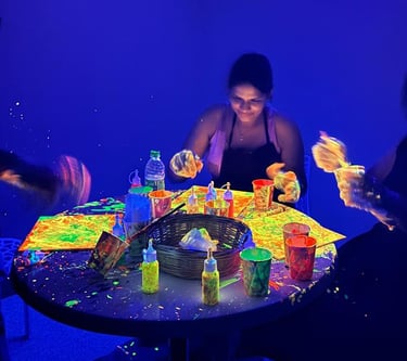 Dive into glow-in-the-dark creativity—pour, swirl, and tilt your way to electrifying fluid art masterpieces!